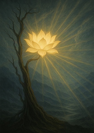 無根樹,花正真,不染塵埃氣自純。歷經萬劫心不改,光華內發照乾坤。